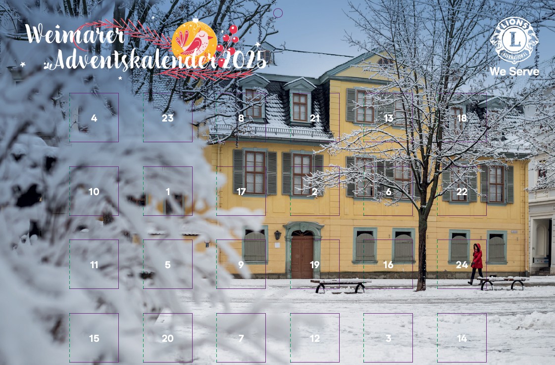 Durch den Adventskalender des Lions Clubs Weimar Classic ist eine für Stadt Weimar besondere Symbiose zwischen regionalen Unternehmen, Firmen, Gewerbetreibenden, Einwohnern und Gästen der Stadt entstanden. Jeder kann einen Beitrag zum Erfolg des Adventskalenders bringen, sei es als Preissponsor, Unterstützer, Verkaufspartner oder Käufer einer der begehrten Kalender.